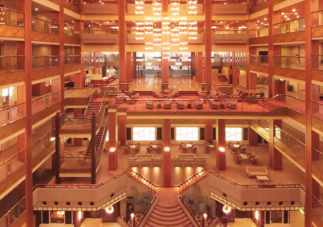 レストラン、ティーラウンジ、ラウンジ、バーラウンジ、バー、夜食コーナー、居酒屋コーナー、カラオケルーム、多目的室、宴会場、会議室、大浴場、サウナ、露天風呂、湯上がりサロン、禁煙ルーム、児童遊園施設、売店、自動販売機、エステサロン、プール(夏期のみ)、ゲームコーナー、卓球、マッサージサービス、モーニングコール、宅配便