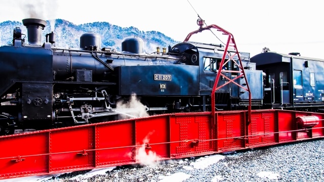 その左隣にあるのが土曜日、日曜日と祝日にSL機関車大樹が走る時に向きを変える転車台があります。