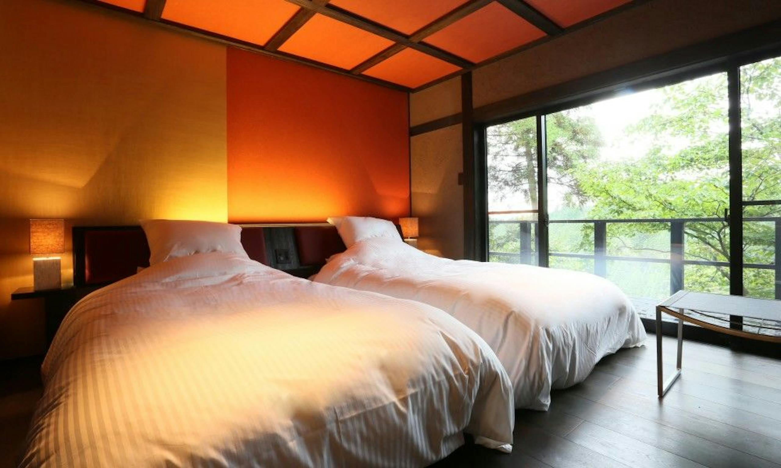 2階 ツインベッドルーム+檜内風呂+岩露天風呂+洗面所+トイレ
