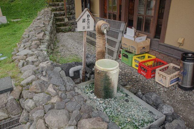 硫黄分が強いことから湯の花も多く白濁している源泉となっています。