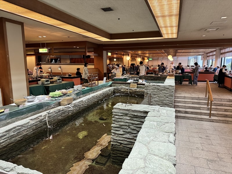 朝食はレストラン厳島で食べ放題のビュッフェとなっていて、利用可能時間は午前7時から午前9時となっています。
