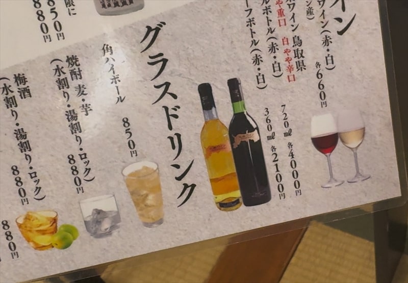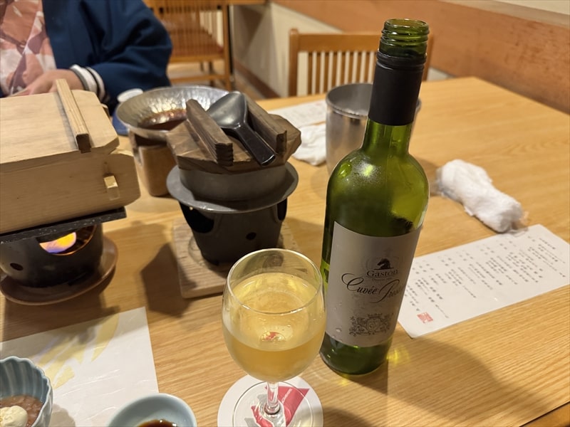 メニューでは鳥取県のワインとなっていましたが、実際に出て来たのはフランスワインのガストン・キュベ・プレステージ(辛口)で1本1,700円ほどの飲みやすいボルドーワインでした。