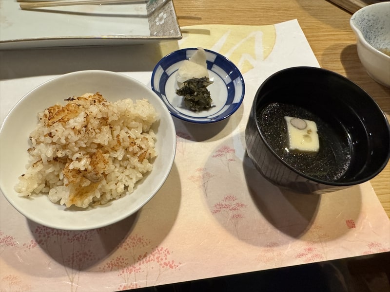 松茸釜飯は油揚げの量が多いためか風味が強くて松茸の香りを楽しむことが出来ませんでした。