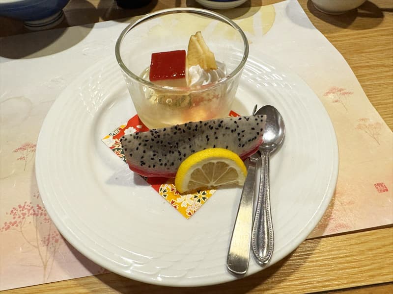 水物:火龍果 粉糖 檸檬 林檎ゼリー 林檎けーき 林檎 生クリーム
