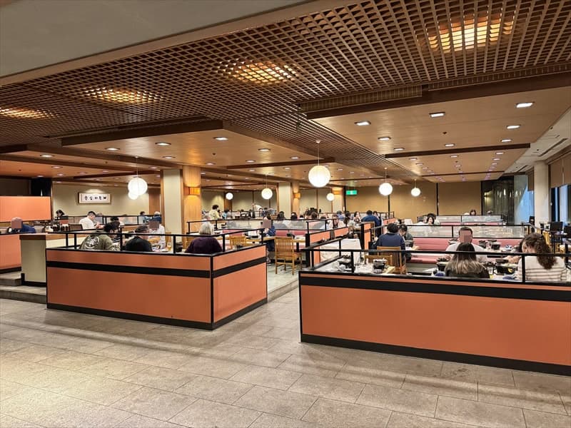 席はフリーで空いている席に入口でもらった食事中ですという札を置いて確保します。