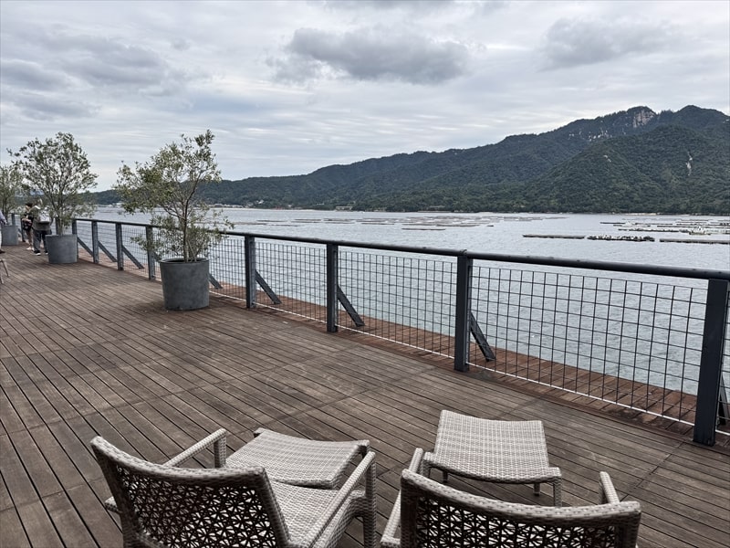 ロビーの海側にはデッキがあり、宮島を望むことができます。