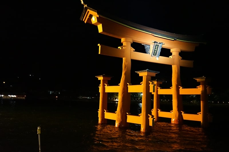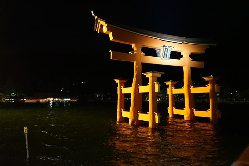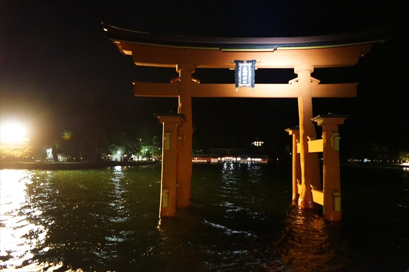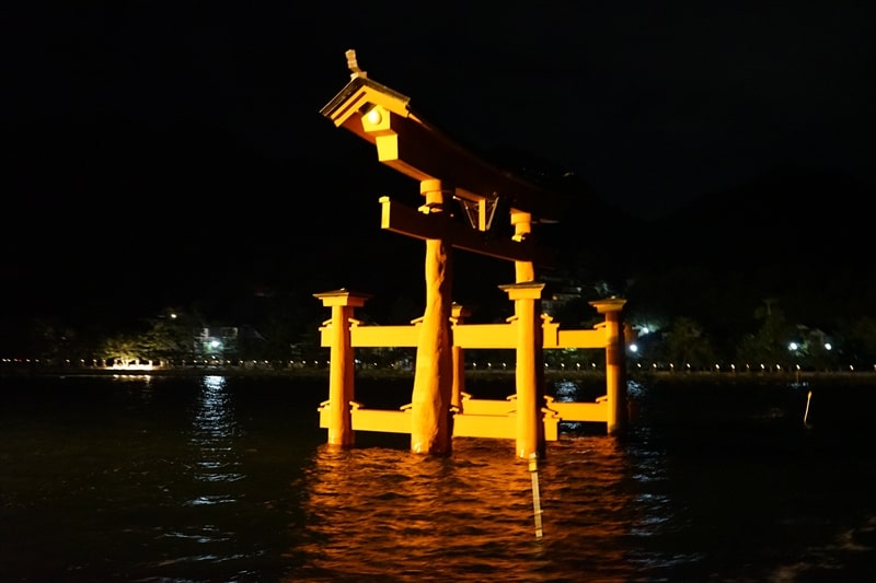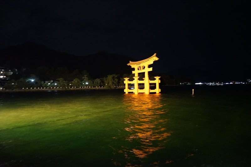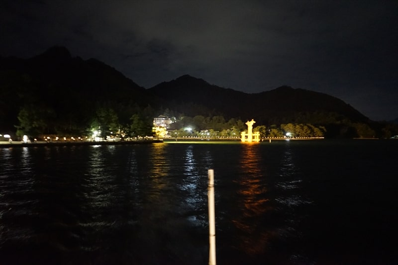鳥居は宮島からライトを当てられているのですが、船は反対側に着きましたので船からも鳥居をライトで照らしてくれます。