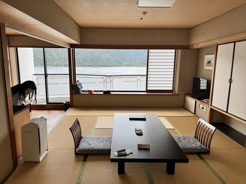 部屋の窓からは遠景で宮島の厳島神社が小さく見ることができる部屋となっていました。