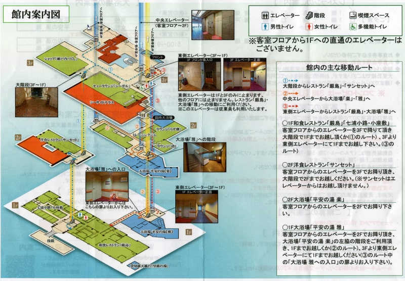 分かりにくいのでホテルで頂いた館内案内図を添付しておきます。