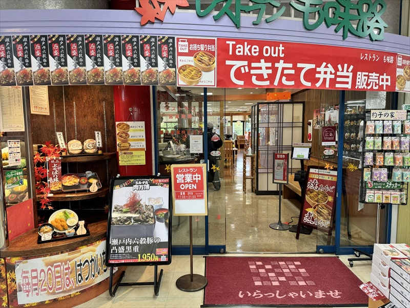 旅行中の30分は貴重ですから次の観光地に向かうため高速道路に乗って、宮島サービスエリアのレストランのも味路で焼きあなご丼を頂きました。