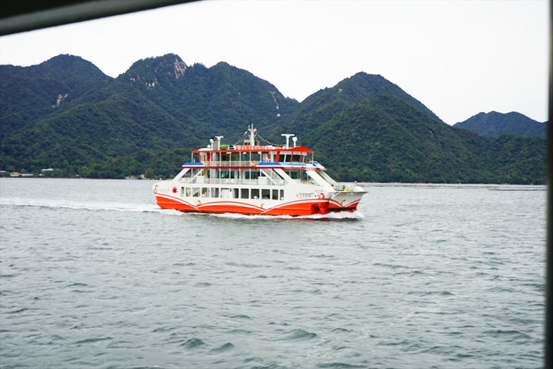 私たちが宮島を訪れた時期は修学旅行の時期で、フェリーにも修学旅行生が多く乗っていたのですが、時間が早いのでフェリーは並ぶことなくすぐに乗れましたし、船室も空いていました。