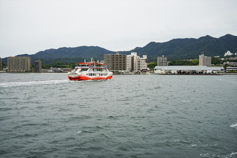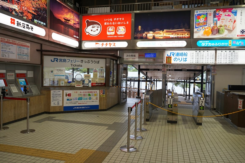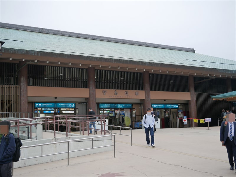 宮島に向かうフェリーはJR西日本宮島フェリーと宮島松大汽船の乗り場が隣り合わせとなっていましたので、どちらか早く乗船できる方を選んで宮島松大汽船のフェリーに乗船できました。