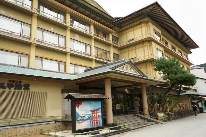途中に和風の旅館がありました、ここに宿泊できましたら夕暮れや早朝の厳島神社を散策できて素敵なのではないでしょうか。