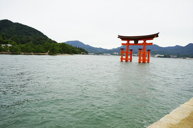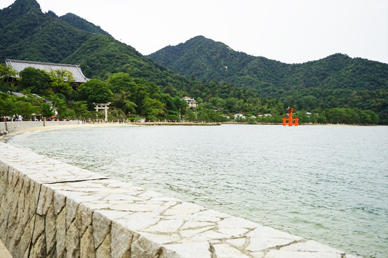 桟橋から海岸沿いの道を歩きますと厳島神社の大鳥居が見えますので宮島に来たと実感ができます。