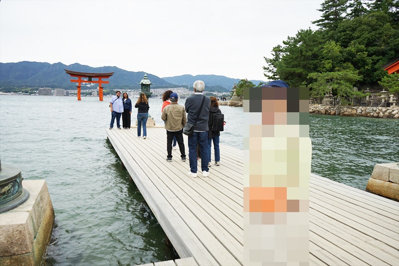 大鳥居をバックに写真を撮るポイントだけは少し混雑していましたが、それでも3組が居ただけでしたので順番を待てば海に浮かぶ大鳥居をバックに記念撮影をすることができます。