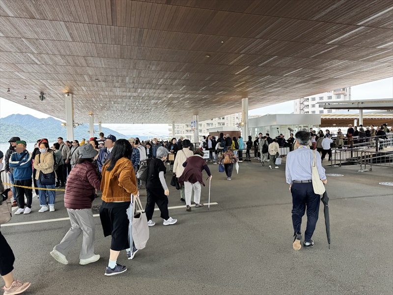 私たちが帰る午前11時頃には宮島桟橋のフェリーから降りて来る方もすごい人数でしたし、宮島口のフェリー乗り場も乗船する方が多く並んでいましたので、やはりフェリーの乗船時間は早い時間がおすすめです。
