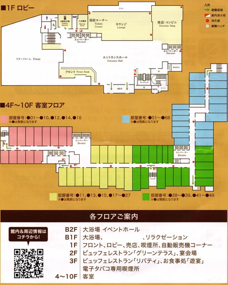地下1階の大浴場は午後2時から翌日午前3時までが男性用、午前4時から午前9時30分が女性用となります。