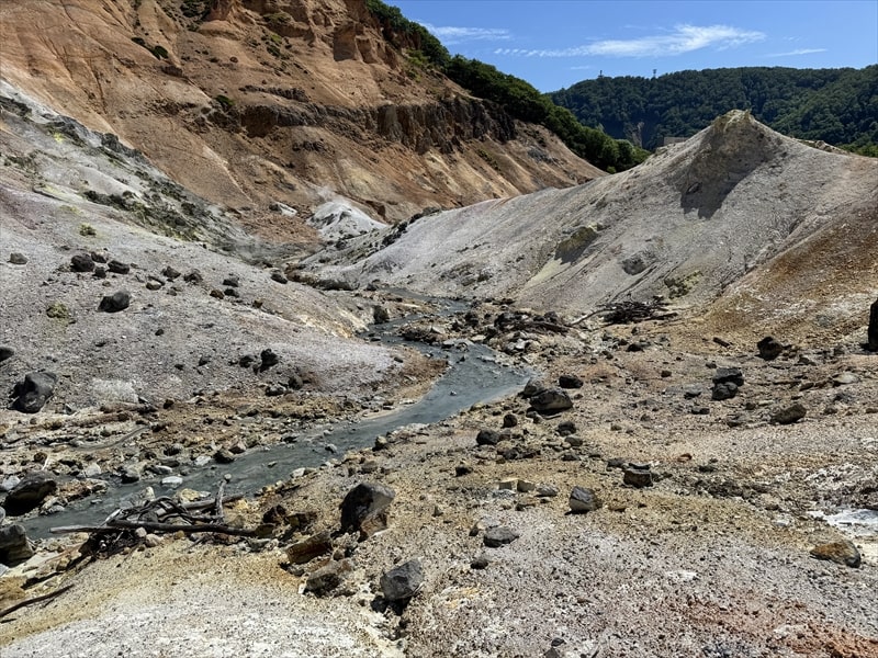 登別温泉の宿のチェックイン前の観光としては地獄谷と大湯沼川天然足湯観光はお勧めです。