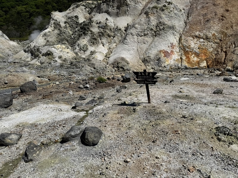 大湯沼川天然足湯には地獄谷から倶多楽湖公園線を走りますと950メートル程の場所に「大湯沼駐車場」左折の看板がありますので、こちらを左折すれば5分ほどで大湯沼駐車場に着きます。