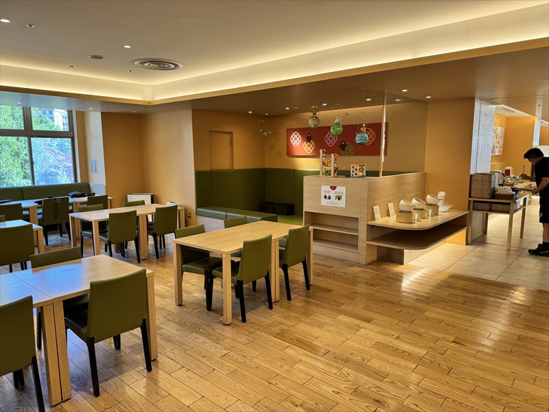 子連れ家族の方はレストランに入ってすぐのキッズスペースのある席に集められていましたので、私たちが案内されたレストラン奥にある席は子連れではない個人旅行の方々用の席となっていて、ゆっくり食事を楽しめる場所となっていましたので快適でした。