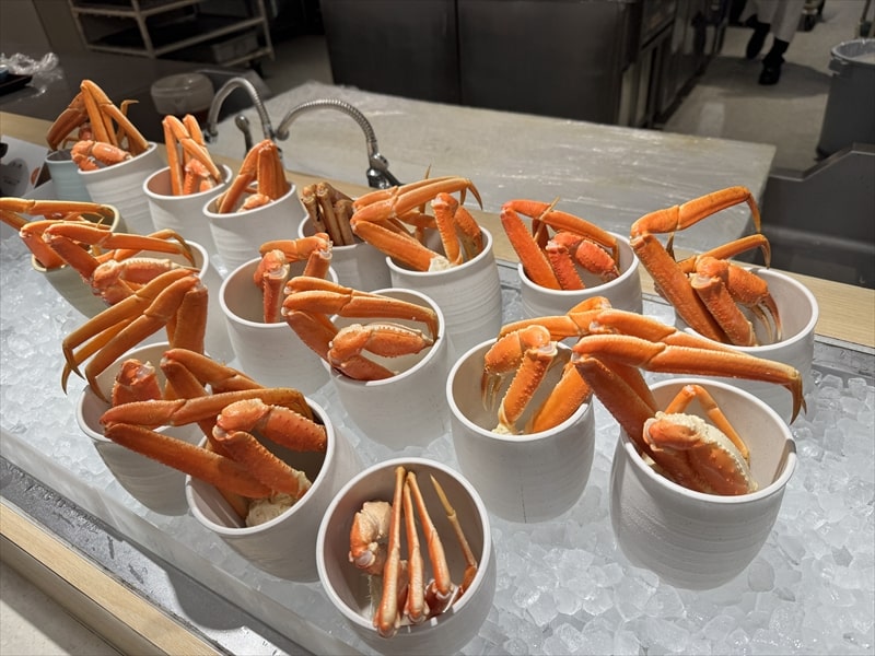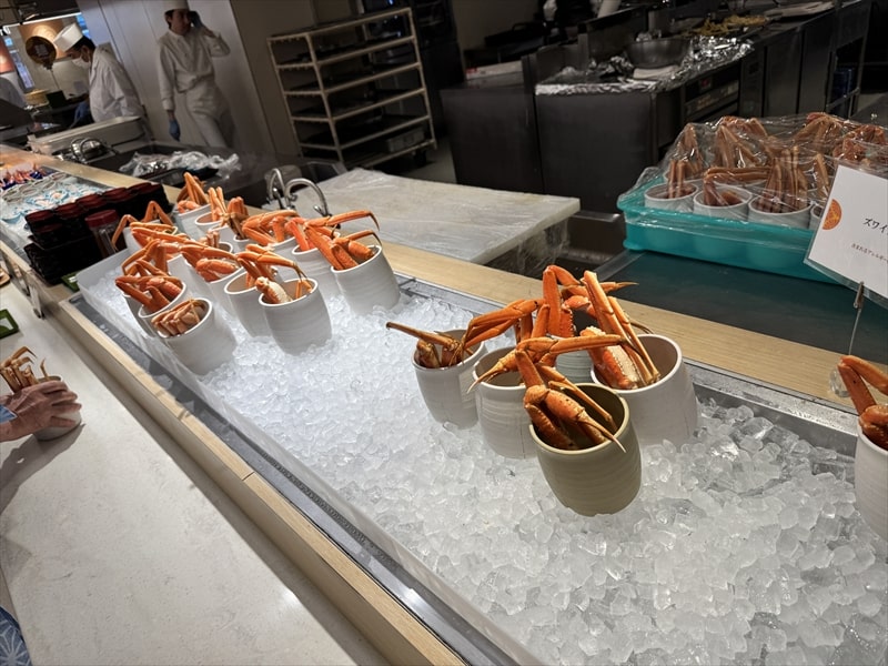 ビュッフェ料理ではグリーンテラスでの料理の楽しみといえば蟹の食べ放題で、人気の蟹のズワイガニが入ったポットは並んでいてもすぐに減っていくのですが、すぐに補充されました。