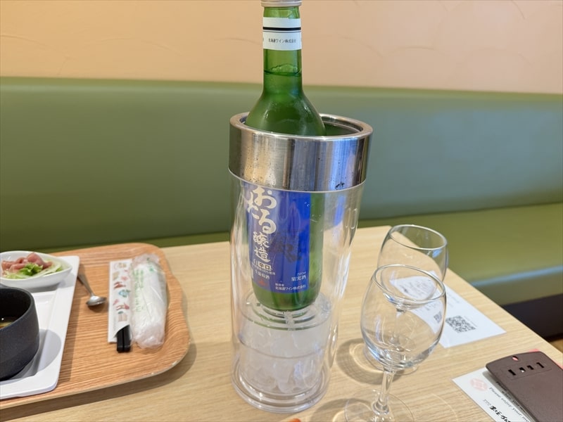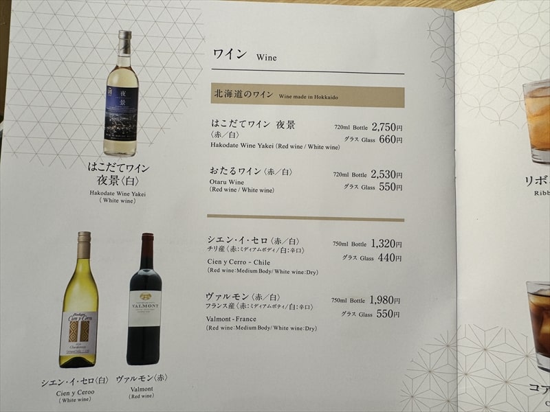 おしゃれな雰囲気のレストランでしたからはこだてワインの白をフルボトルで頂きましたが、2,750円とリーズナブルなものでした。