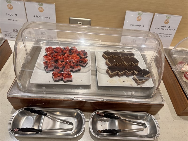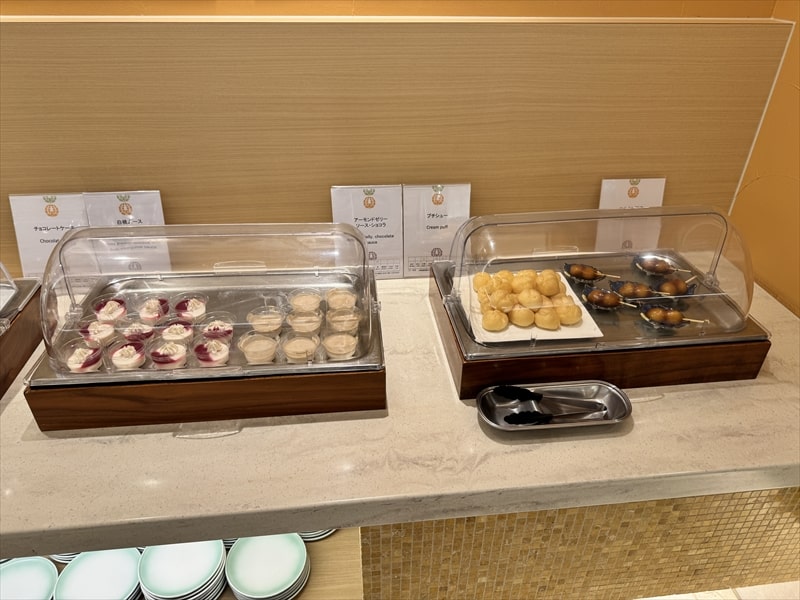 もちろんデザートもそろっていてヨーグルト、ライチ、アロエ、オレンジ、杏仁豆腐、パイナップル、みかんシロップ、ずんだ福餅、ブラウニー、ベイクドチーズケーキなどがありました。