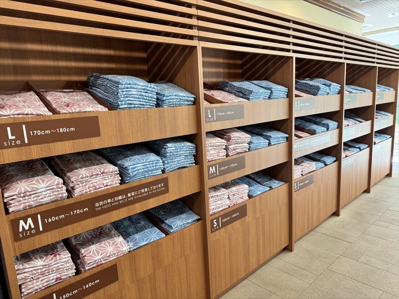浴衣はロビーに置かれていますので、自分に合うサイズのものを持って部屋に行きます。