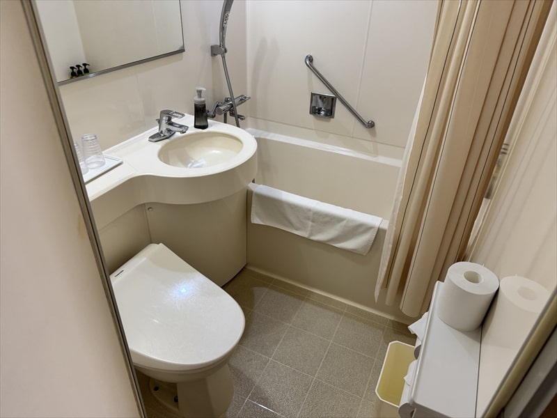 10畳の和室の洗面所やトイレはユニットバスとなっていますが、お風呂は温泉の大浴場を利用しますので問題はありません。