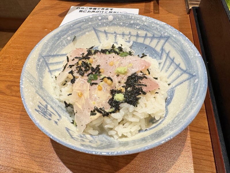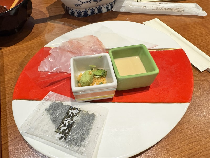 私は紹介は無視して最初から鯛を鯛飯にのせて胡麻だれをかけ、その上からお出汁をかけて頂きましたが、とても美味しく頂けました。