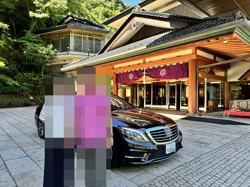 チェックアウトの際にも玄関先で愛車と共に記念撮影をして頂きました。