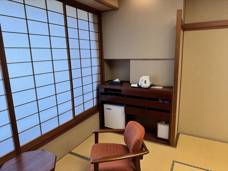 部屋のアメニティは歯ブラシセット、メイク落とし、化粧水、乳液、ハンドソープ、ドライヤー、お茶セット、お茶請け、湯沸かしポット、グラスセット、冷蔵庫、半纏、足袋ソックス、帯、ハンドタオル、バスタオルとなっていました。