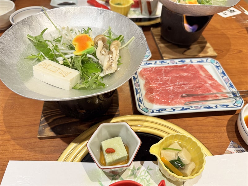 肉料理:山形牛のしゃぶしゃぶ 胡麻だれ ポン酢 薬味