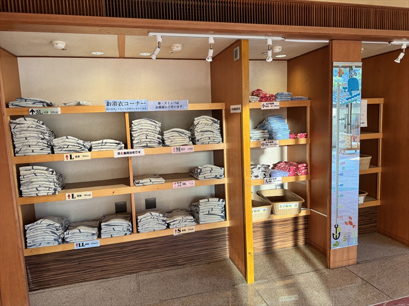 浴衣はロビーにありますので自分に合うサイズのものを部屋に持って行きます。