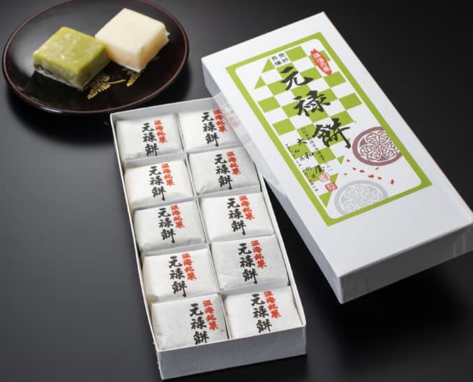 また温泉街にある大和屋菓子舗で作られている元禄餅は、特上の白玉粉と抹茶でつくられたお餅で、柔らかくまろやかで上品な甘さのお餅です。