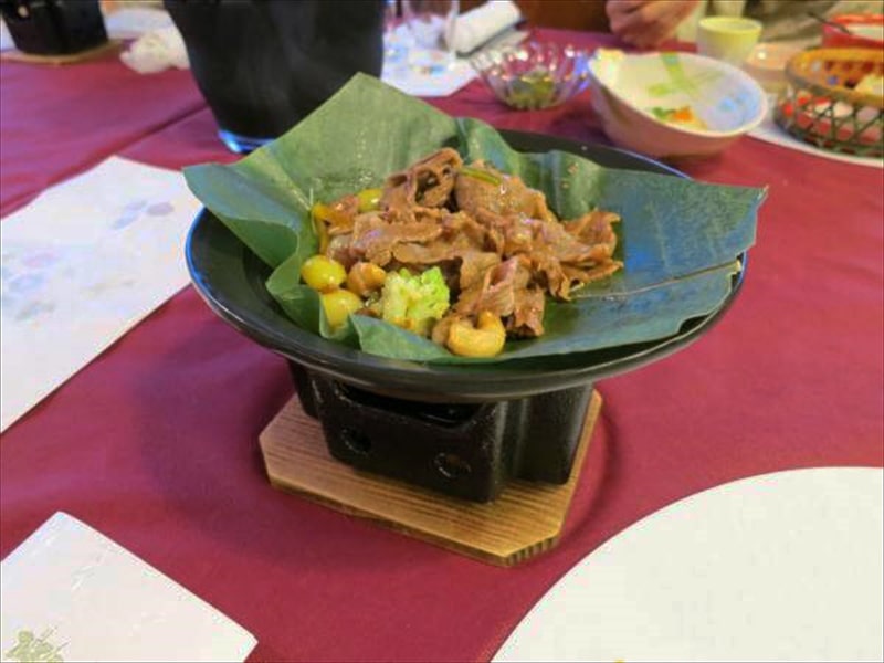 進肴:国産牛ロース朴葉焼