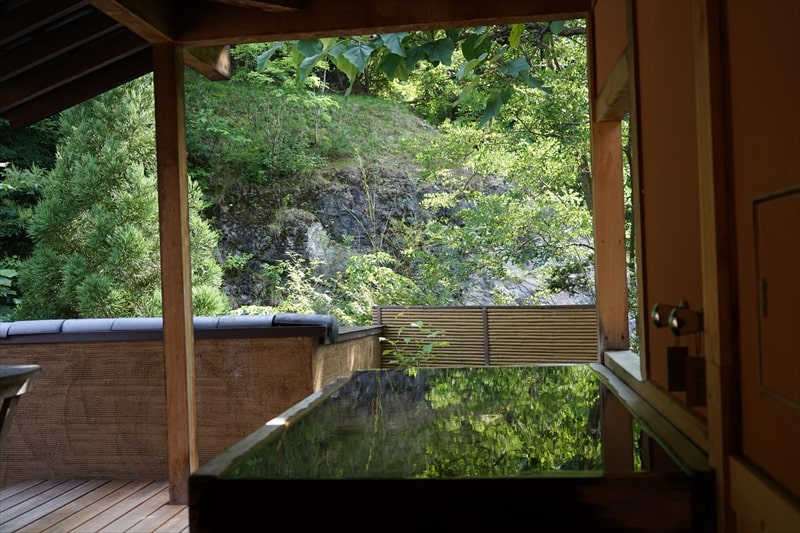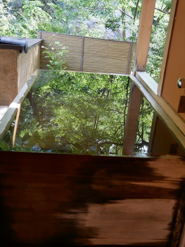 明神館には素晴らしい大浴場があるのですが、部屋に露天風呂があればプライベートに楽しむことが出来て最高でした。