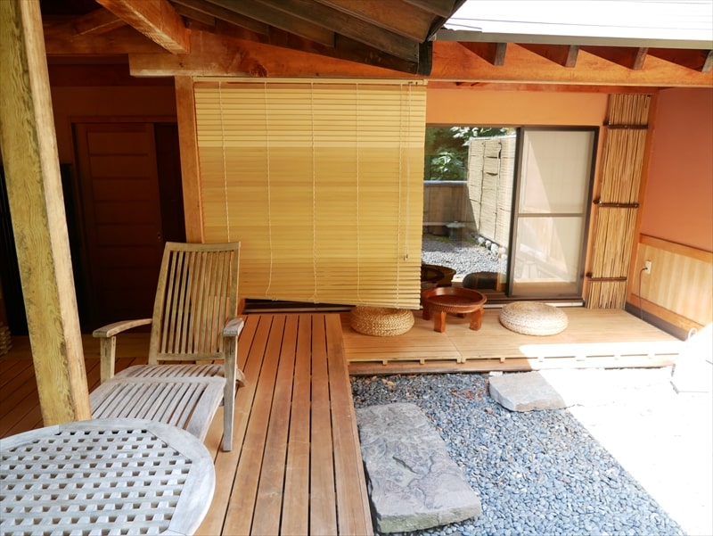 解放感ある露天風呂を味わった後は、裸で椅子に横になり森林浴を楽しみました。
