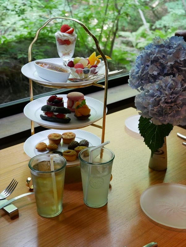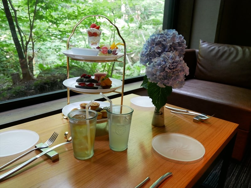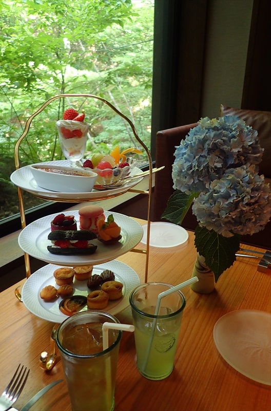 明神館へは午後3時前の2時40分頃のチェックインとなりましたので3時からアフタヌーンティーを楽しみました。