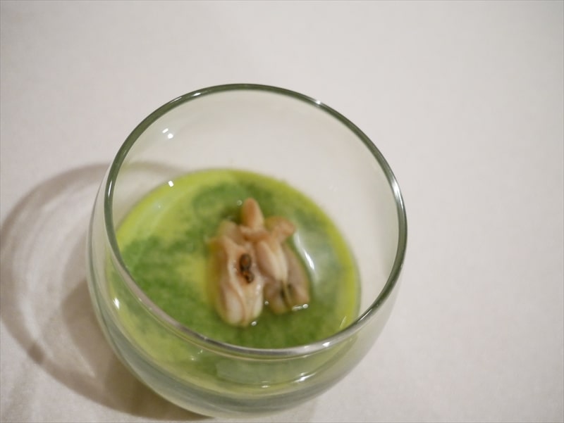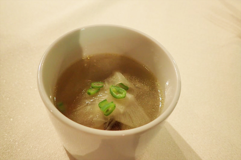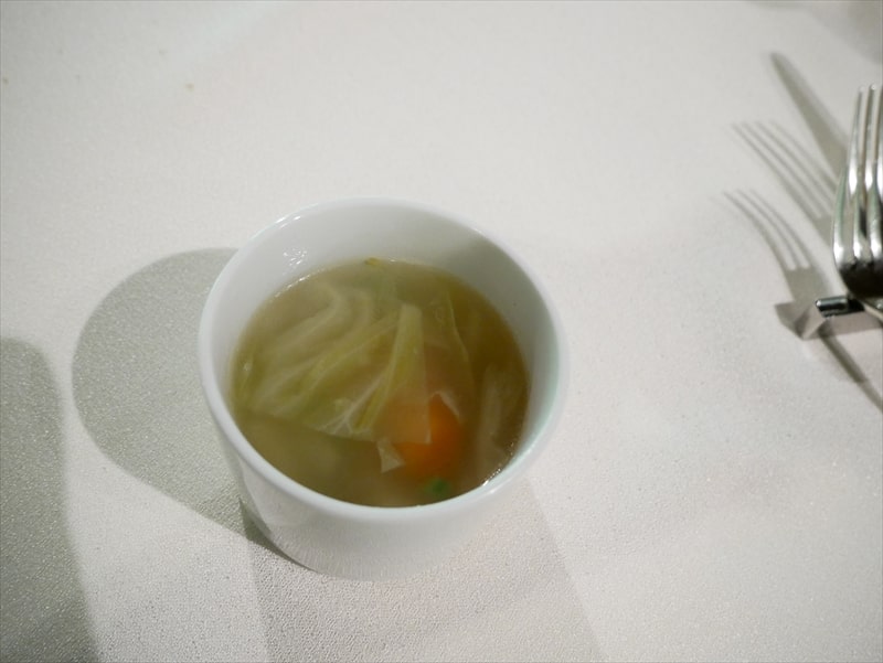 生ハムでとったスープはガーリックの風味があり、エスカルゴが大好きな私には好きな一品でした。