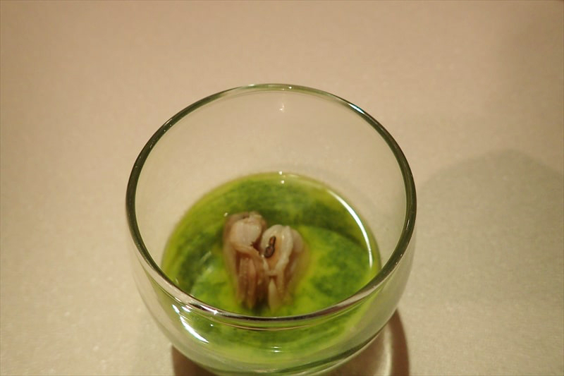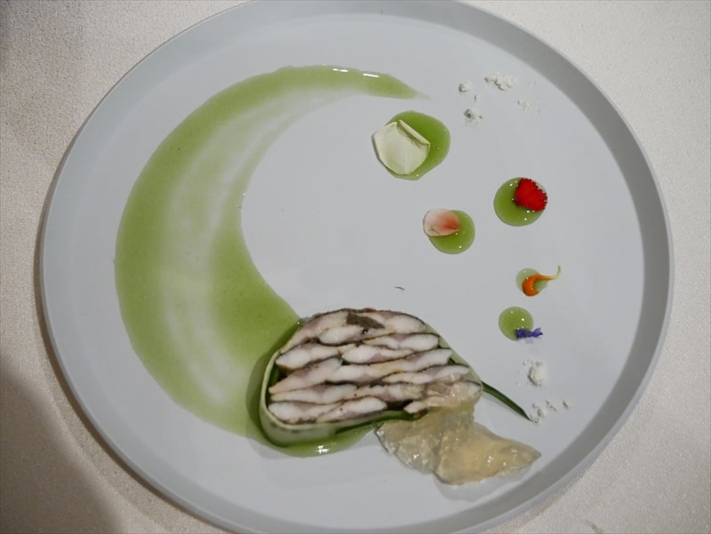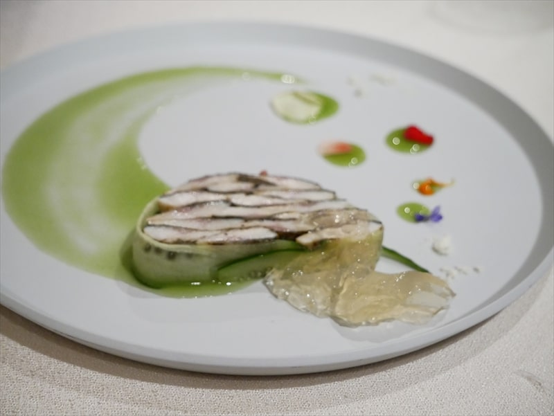 鮎はもともとキュウリの香りがするのですが、この一品は胡瓜で巻かれているのでその香りを増長して楽しむといったものなのでしょうか。