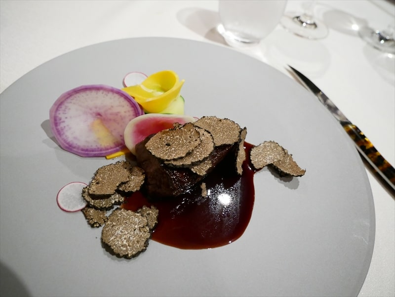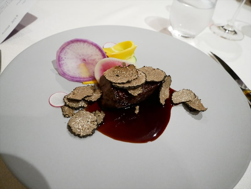 肉料理はA5ランクの信州和牛にトリュフのスライスを添えてとなっていましたが、当日レストランでシャトーブリアンにアップグレードしませんかと聞かれましたので、料理が更に美味しくなればと思いアップグレードしてもらいました。