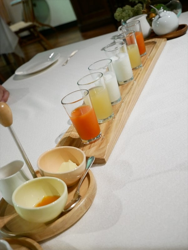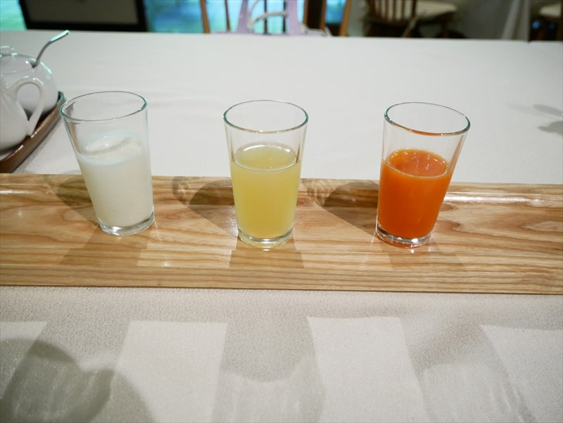 まずはジュースですが地元のニンジンのジュースと林檎ジュース、牛乳にハチミツを入れたものが並びました。