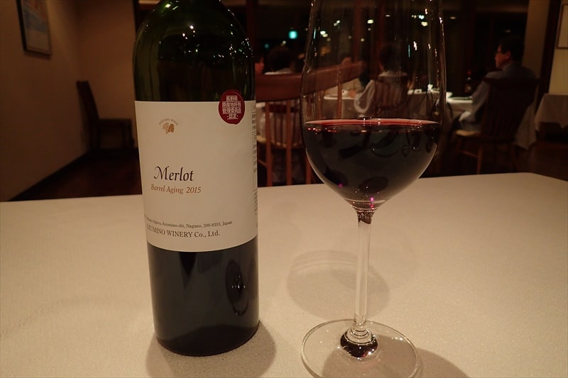 赤ワインは安曇野ワイナリーのメルロ 樽熟成 の2015でした。