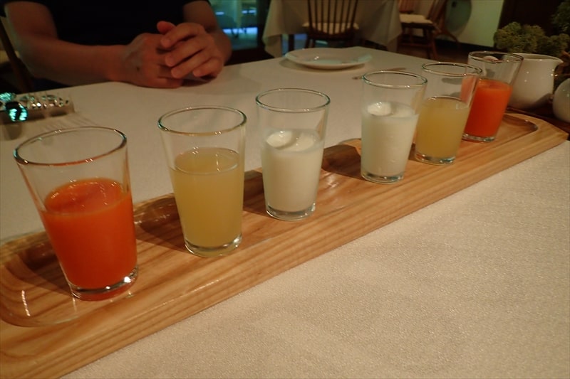 ディナーは地産地消明神館のお料理と信州産ワインのマリアージュというプランでしたので、ペアリングされたワインが2杯付いていました。