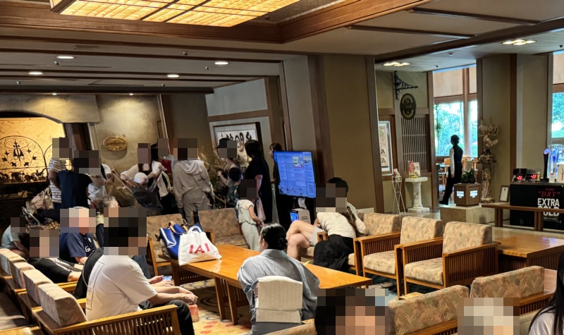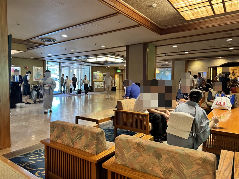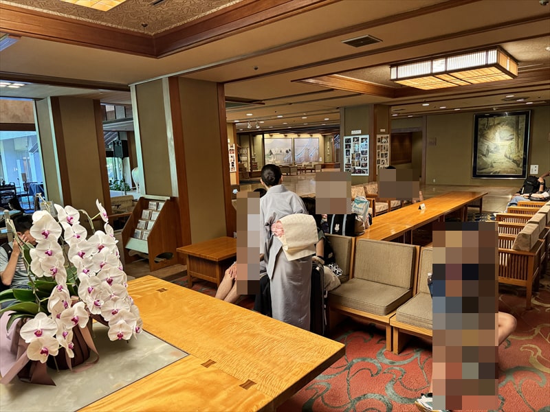 ロビーラウンジを見渡しますと椅子の空席が少なくとても混んでいましたので、今まで私が宿泊した事のあるどの旅館よりも規模が大きい、超大型旅館を利用する方の人数の多さに驚きました。