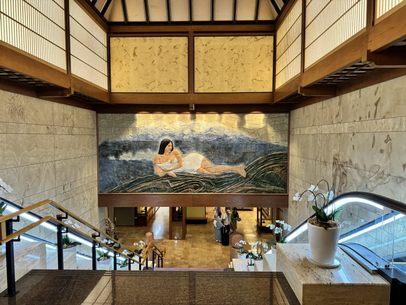 エレベーターを降りますと長い通路を通って展望大浴場へ行きます。