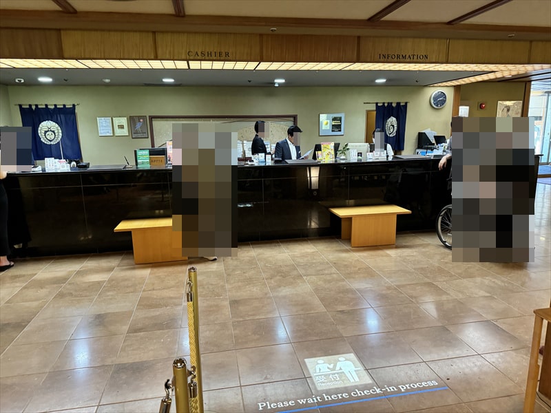 フロントカウンターは3か所が開いていましたが、満員となっていたのでチェックインするには少し待ちました。