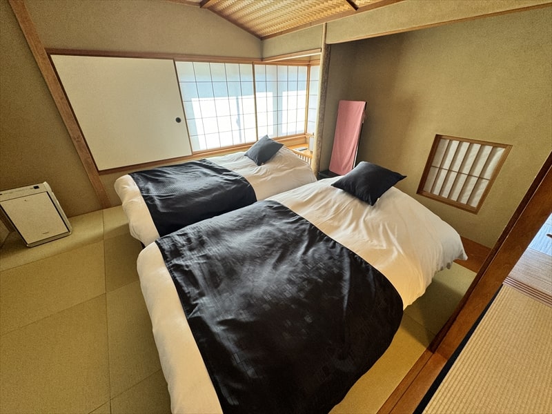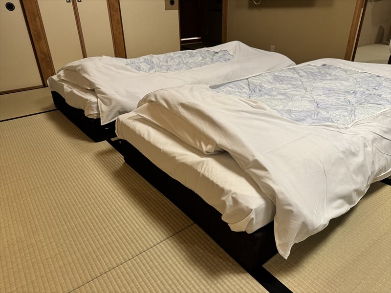 4名での宿泊でしたので和室に布団を敷いてもらったのですが、敷かれた布団はクッションが2段もあってとても寝やすいものとなっていました。