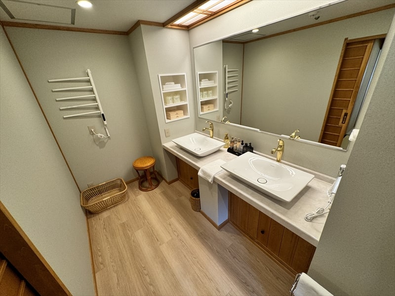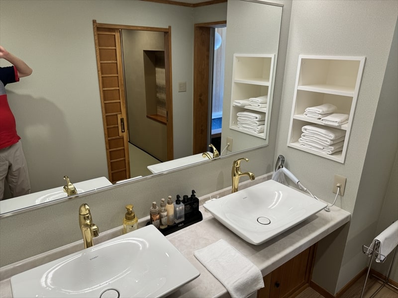 洗面所は2ボウルで広々としていましたので4人でも使いやすいとおもいました。
